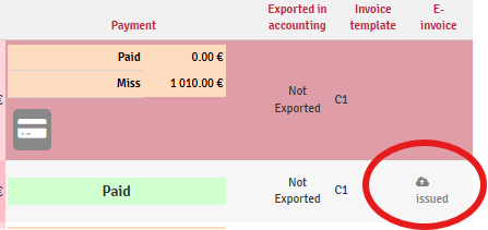 Good to know: By clicking on the small arrow next to an invoice, you can use a shortcut to send an invoice via e-invoicing directly from this menu, without having to go back to the folder.