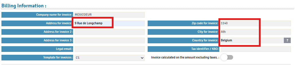 This information is mandatory to enable correspondence and the correct delivery of the electronic invoice to the recipient.