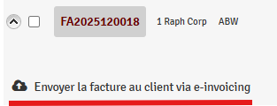 Once the customer file has been validated: Open the relevant file and generate the invoice as usual. Then click on the ‘e-invoicing’ button to send it.