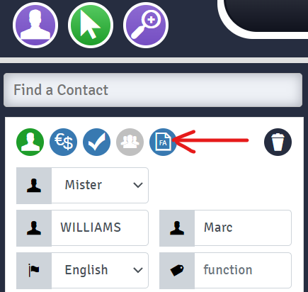 When this icon is greyed out, the contact's name will no longer be displayed on the invoice.
