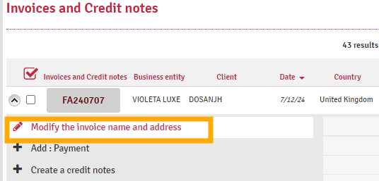 - Click on "Modify the invoice name and address"