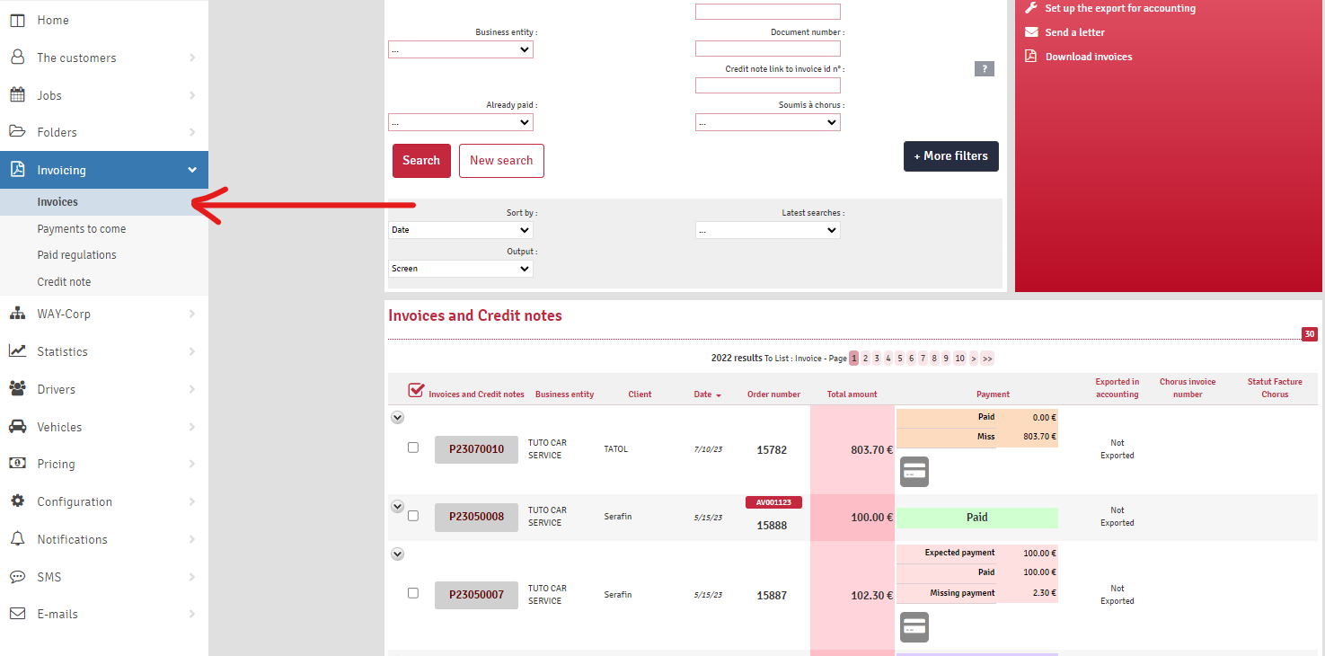 Go to: MENU > Invoicing > Invoices.