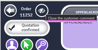 - Left: The content of the "comment" box in the customer file is visible all the time by default. A button to the right of the order number lets you hide this comment.
