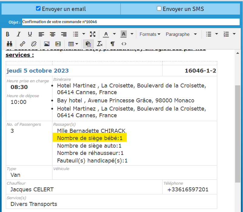 - Mission summary by email: The special equipment entered on the job now appears in the messages sent by email.