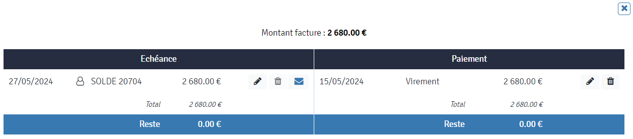 - Entête du dossier : modification du recap financier du dossier pour y intégrer "Montant réglé".