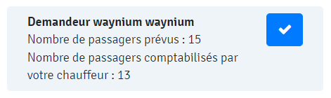 - Si les passagers sont saisis sans détails : le chauffeur peut modifier le nombre de passagers présents dans le véhicule.